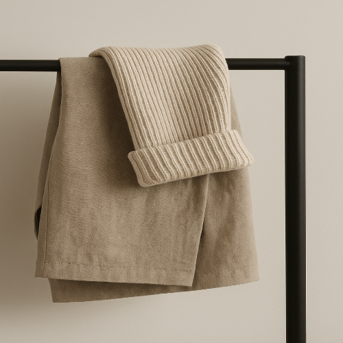 Our carefully curated pieces bring calm to your wardrobe. Experience the refined harmony of soft colors and pure materials.